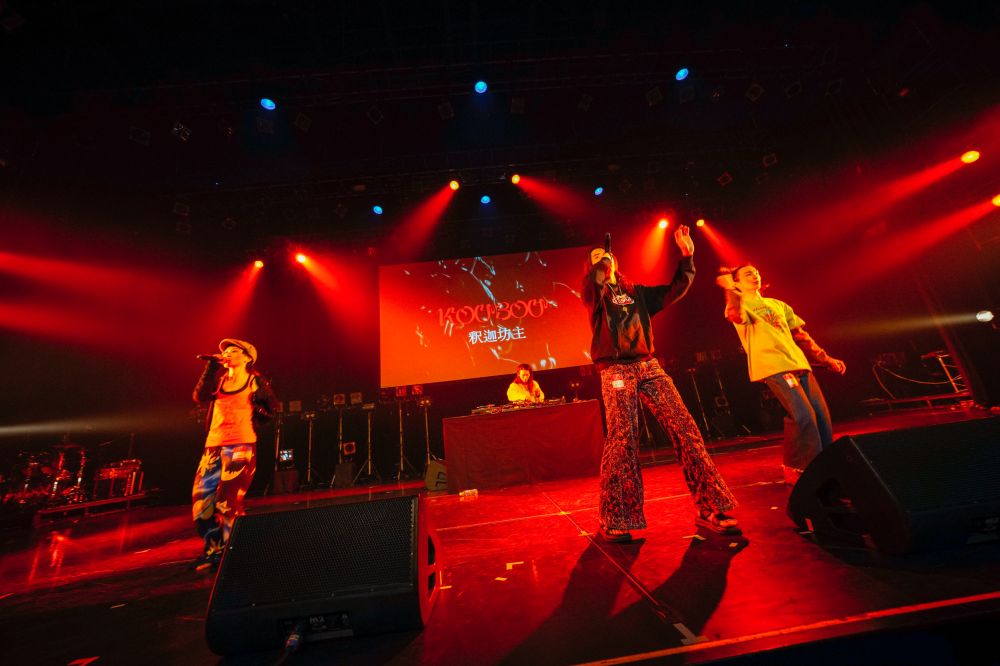 この後はどんぐりず、釈迦坊主、ralphとそれぞれキャラクターの濃い3組が続いた。森とチョモによる幼馴染で結成したどんぐりずは、そのほんわかとしたネーミングやゆるりとした佇まいとは裏腹に、スキルフルなラップと様々な音楽を横断する変幻自在なトラック、ポップで中毒性の高い音楽で魅せる。この日1曲目に披露した「NO WAY」は中南米でもヒットしているという。日本語詞の曲だが、軽々と国境を超えるのも納得のユニークで、万国共通のノリの良さやいつの間にかクセになっている中毒性が抜群だ。“今日楽しくない?”“まじで楽しい”とオーディエンスと空気を分かち合うような無邪気さもまた、ファンの裾野を広げるステージになったはずだ。