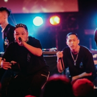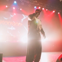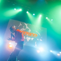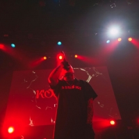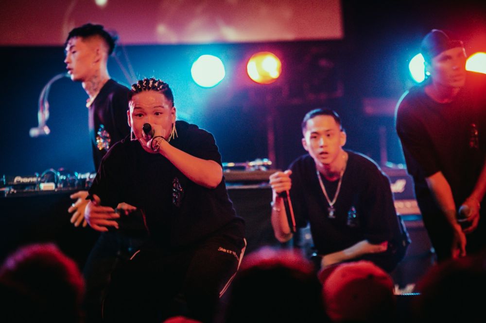 その1番手を担ったのは、Paleduskと同郷、福岡発の気鋭のヒップホップクルーDeep Leafだ。「KOUBOU」には初回から出演する8人が、イベントの幕をあける。高い期待感を軽々と超えるように8人8様のスタイルでのラップで魅せ、アグレッシヴに叫びあげる分厚いステージングでフロアに迫る。その熱量は、凄まじい。“今日はかましにきた”、“お前らの熱い情熱と、ソウル、魂を俺にぶつけてくれ”というMCに、オーディエンスもまたコブシを掲げて応えるなどフロアもいいムードだ。「LALALA(Hip Hop Musical)」や「KOBURA」など、タフでいてファニーな面も見せるスペクタクルなステージで、短い時間だが、インパクト抜群の存在感で会場の士気をあげた。