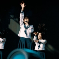 一曲目が終わった後のMCでは英語での自己紹介もあり、SUZUKAが英語で「Say、めちゃめちゃ気持ちいい〜!」と呼びかけると、観客もそれにしっかりと「MECHA MECHA KIMOCHII〜!」と応えた。そして、「Let’s Go Head in The Clouds!」と叫ぶと2曲目の「試験前夜」が始まり、赤いハチマキを使ったパフォーマンスが彼女達の歌と踊りをより際立たせて見せた。続けて、「恋ゲバ」でもダイナミックなダンスと演出が全力で感じられ、会場を圧倒させた。