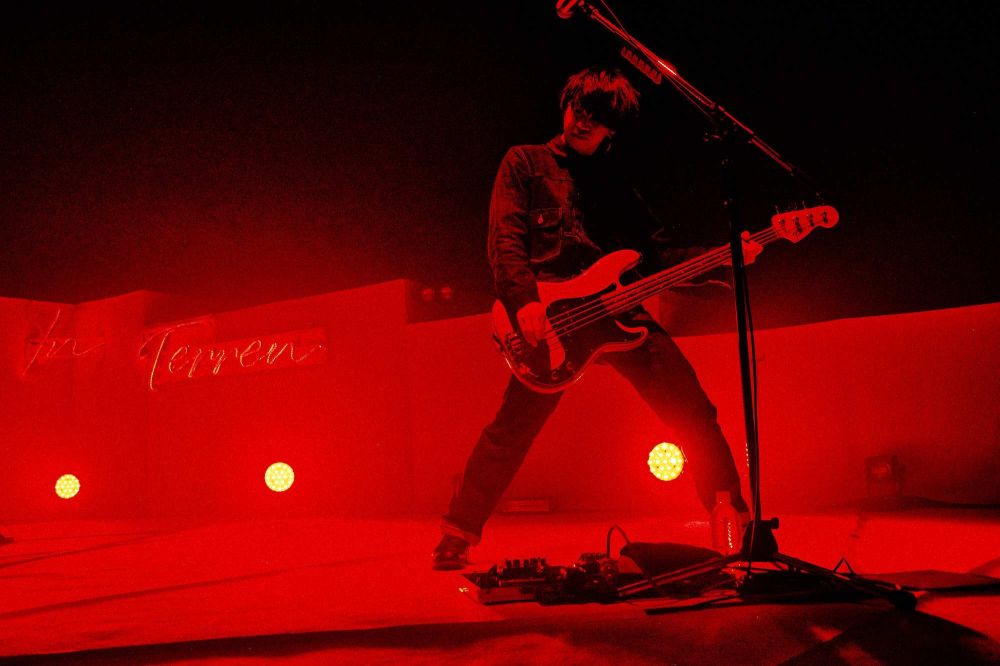 MCに続いて届けられた「innocence」は、LAMP IN TERRENの曲の中でもアップチューンで、ライブでも盛り上がる代表曲の一つ。彼らの激しい曲は単純に身体を揺らすだけではなく、心の芯に響いてくるものがある。赤く染まるステージが視覚的にもインパクトは絶大。そして、「heartbeat」へと紡がれていく。緩急をつけたセットリストで感情を揺さぶりかける。