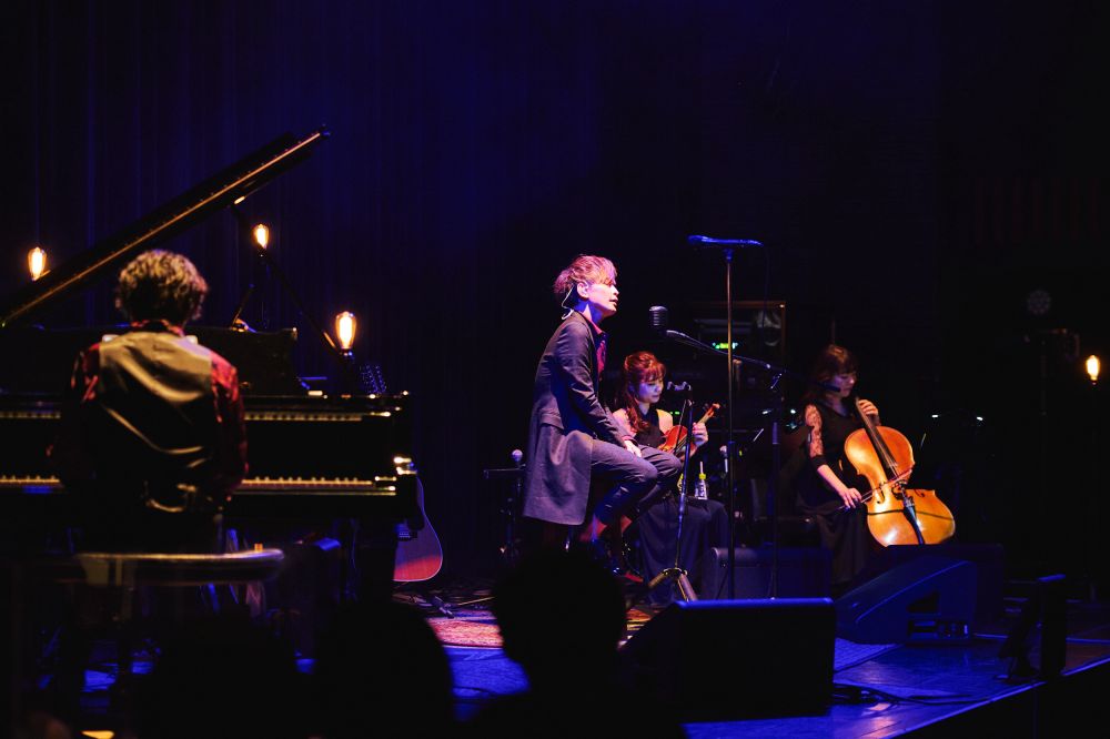 セットリストは1stと2ndで数曲入れ替えがあり、筆者が取材で足を運んだのは1stだけだが2ndも是非体感したかった、と思わされるチョイス。これは全体を通して言えることだが、元々バラードだった曲も、元来は激しいアレンジだった曲も、アコースティックセットに変わることでただ単に“優しくなる”わけでは決してなかった。テンポはスローでも躍動的であったり、静けさの中に熱い炎を感じさせたり、音楽から迸るエネルギーを手に取るようにありありと感じることができるのだった。