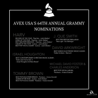 また、Avex USAに従来から所属する作家Patrick “J. Que” Smithが参加したEric Bellingerのアルバム「New Light」が、グラミー賞の最優秀プログレッシブR&Bアルバム / Best Progressive R&B Albumにノミネートされた。
