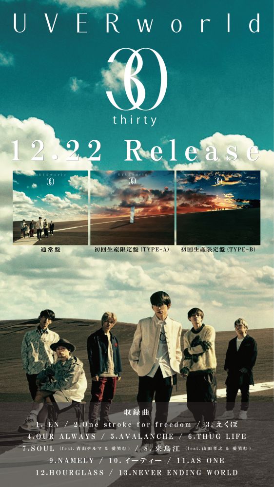 フォトニュース UVERworld、約2年ぶりとなる11枚目アルバムタイトルは『30』に決定 UVERworld みんなの意見は?コメントを見る 関連写真・動画 写真一覧 みんなのコメント コメントを書く(ユーザー登録不要) この写真の記事を読むUVERworld、約2年ぶりとなる11枚目アルバムタイトル『30』に決定 前の写真を見る →