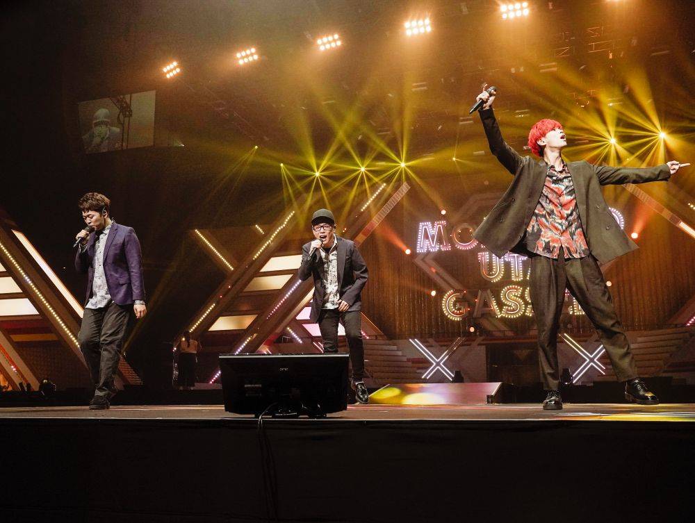 黒い着物姿で登場した塩乃華織が『きのくに線』を力強くも繊細に歌唱すると、佐々木彩夏が総合プロデューサーを務め、福島県浪江町を中心に活動しているグループ・浪江女子発組合がデビュー曲『なみえのわ』を気持ちをこめて歌い上げた。パフォーマンス終了後、浪江女子発組合による「かみなり様〜!」の掛け声で現れたのは、高木ブー・仲本工事・ももクロの高城れにによるユニット、イナズマこぶたランド。ネタを交え会場を笑いで包みながらも『Diana』を熱唱し、「次行ってみよう!」のセリフで、女性アイドルグループ・私立恵比寿中学がステージイン。来年リリースの7thアルバムから先行配信されている『Anytime, Anywhere』でたくの愛を届け、ファンを魅了した。