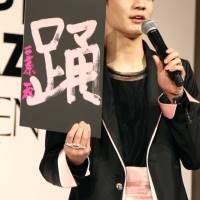 豆原一成は「踊」。「JO1として3年目になりますし、僕個人としては踊ることが大好きでここまで来ました。初心を忘れずにというところで、もっともっと熱意を持って頑張っていきたい」。
