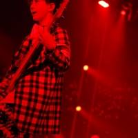 12月26日(日)、ついに迎えたツアー最終日は、M3に「the Fourth Avenue Cafe」(Cafeのeはアキュートアクセント付)を投入。前夜とはまた違った趣を感じさせた。直前のMCで「とうとうツアーファイナルまでやってきたぜ!」と喜びを抑えきれない様子だったhydeは、ステージに寝そべって歌唱する一幕も。序盤をポップにまとめるかと思いきや、艶めかしい「X X X」に続けて放ったのは、ツアー後半でセットリストに加わった「fate」。静と動のテンションを行き来し、狂おしい昂りを見せていく各メンバーのプレイから目を離すことができなくなる。凍てついた極北を想起させる異世界へと誘った後は、ステージ全体がゆっくりと回転をスタート。深紅の煽情的なライティングの下「REVELATION」でラウドに。「生きてるって……生きてるって示してくれよ、東京!」とhydeはイントロで焚きつけ、リズムに乗せてファンは手を振り上げバットマラカスライトを強く鳴らした。たとえ声は出せなくても、ファンが全力で想いを伝えようとしていることはひしひしと肌で感じられた。