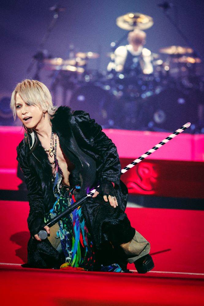 「NEO UNIVERSE」ではこの日、<遠い空が導いて>と歌いながらhydeがkenに歩み寄り、まるで演劇のワンシーンのように、同じ方向を二人で微笑みながら見やる場面も。その直後には「DRINK IT DOWN」をぶつけ、音と音とが拮抗し火花を散らすロックバンドとしての骨太な側面を示した。「花葬」から「EVERLASTING」へと繋げるディープなシークエンスは、直前までの移動の多さとは対照的に、メンバーはほとんど立ち位置から動かずして観客の目を釘付けに。その世界にメンバー自らが深く集中、あるいは曲の世界の住人が憑依したかのようなパフォーマンスにも思えた。