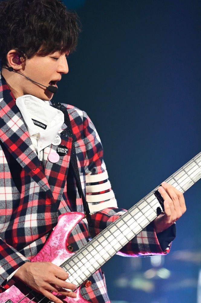 激情が迸るkenのギターリフで「DAYBREAK’S BELL」が幕開けると、嵐に荒れる海原をステージ下方に巡らされたLEDスクリーンに投影。起伏に富んだメロディーに寓話的な歌詞が映え、切迫感に満ちたパフォーマンスで引き付けていく。その直後tetsuyaが足元の台に乗り、ひずんだサウンドメイクを施したダイナミックなベースソロで沸かせると「STAY AWAY」がスタート。外周とは逆方向に円の中心部もゆっくりと回転し始める。曲に合わせたリズムで観客はクラップを繰り出して、会場には一体感が広がった。硬派で骨太な歌唱、及び演奏を聴かせると同時に、見せ方はポップでフレンドリー。“ARENA TOUR MMXX”で初導入したセンターステージ演出は回転のヴァリエーションが増え、見える景色も多彩になってヴァージョンアップ。前人未到のロックショウの形をつくりあげていた。