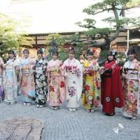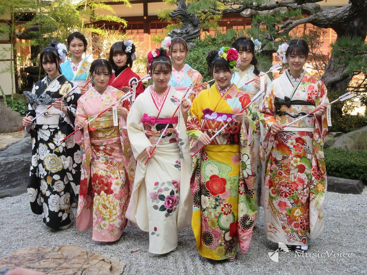 そして、全員で横1列のパターンと、前後2列のパターンでフォトセッション。新成人の眩しい笑顔を振りまいた。