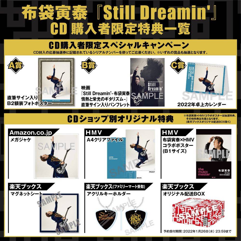 布袋寅泰の60歳の誕生日である2022年2月1日にリリースする記念すべき20枚目のオリジナルアルバム『Still Dreamin’』のトラックリストが公開された。