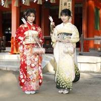 HKT48の田中美久と矢吹奈子が成人の日の10日、福岡市博多区・住吉神社で成人式を行った。