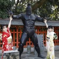 最後に、力をもらえると云われているパワースポット「古代力士像」の「力」と刻まれた手のひらに手を合わせ笑顔でポーズを決めた。