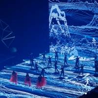 そして始まった「不自然なガール」では、Perfumeの振り付け、演出を手がけるMIKIKO率いるダンスカンパニー、ELEVENPLAYのダンサー16人が登場。Perfumeはどのライブでも3人だけのステージパフォーマンスを行い続けてきた。昨年8月の[polygon wave]で初めて3人以外の存在がステージに立ったことは、明らかにチームPerfumeが新しいフェイズに足を踏み入れた瞬間だった。誠実なクリエイティブしかない世界でいかにして進化をするか。そのひとつの答えがこのオープニングにあった。