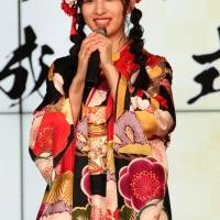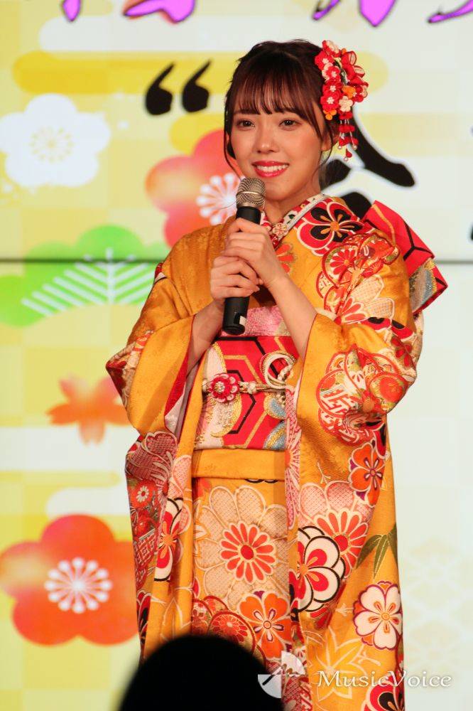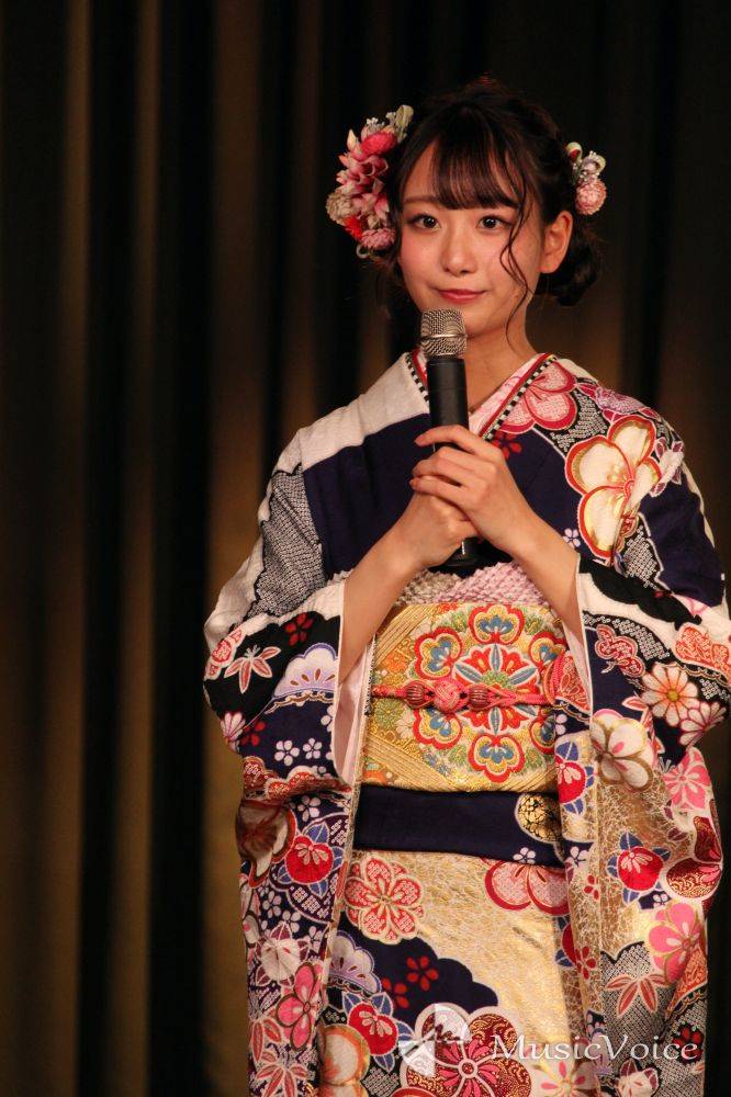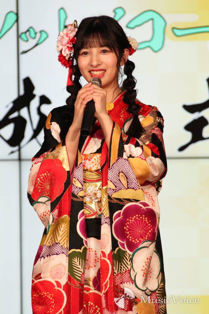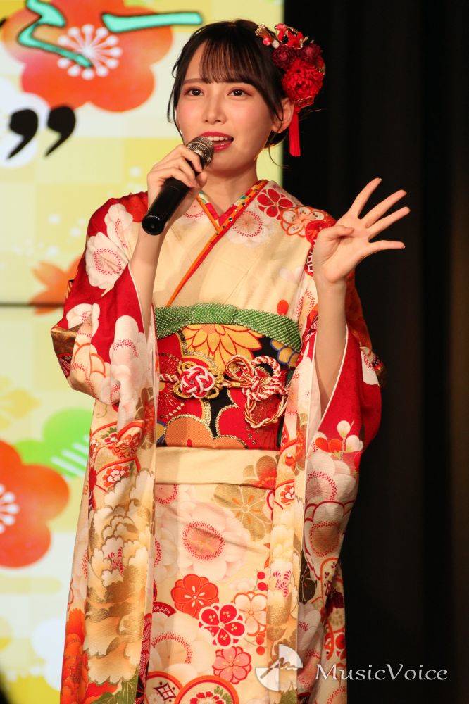 鈴木は「成人式は前乗りで真っ赤な振袖を着まして、当日は真っ白なレースの振袖を着たので会場で浮いていたんですけど、今日は赤と白の王道な柄の着物を着ることができました。いろんな自分を皆さんにお見せできることができて嬉しい」。