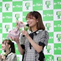 指原莉乃プロデュースによるアイドルユニット=LOVE(イコラブ)のメンバー大谷映美里、音嶋莉沙、大場花菜の3人が4日、神田税務署で行われた『「スマホでチャレンジ!e-Tax」完成披露』に登壇し、スマートフォンを使った確定申告に挑戦した。