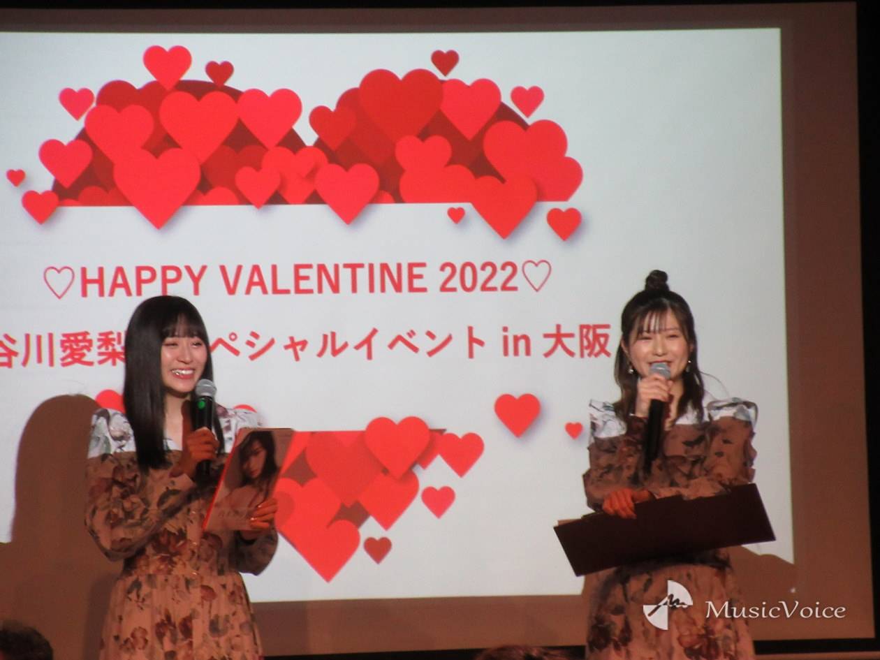 元NMB48の2期生で、現在は女優・タレントとして活動中の谷川愛梨が2月13日(日)、アニメイト O.N.SQUARE(大阪・日本橋)にて、「(ハート―マーク)HAPPY VALENTINE 2022(ハート―マーク) 谷川愛梨のスペシャルイベントin大阪」を開催。第1部は内木志(元NMB48・ドラフト1期生)、第2部は城恵理子(元NMB48・2期生)をゲストに迎えて、グループ時代の思い出話や、バラエティ要素が満載のコーナー、バレンタインらしい企画などで、集結したファンに笑顔を届けた。今回は、そのイベントレポートに加えて、谷川と内木の「あいここ」コンビと、谷川と城の「あいジョー」コンビの超レアなインタビューをお楽しみ下さい。【取材・文・撮影=ポッター平井】