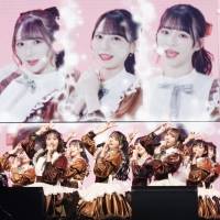 続けて冨田がソロ曲「空白の花」をステージセンターで堂々と歌い上げ、その歌唱力に圧倒された会場から暖かい拍手が起こった。しっとりとした空間から一変、またまた初披露となるユニット曲「#おふしょるにっと」で明るい空間へ。尾木・菅波・鈴木・谷崎が 解禁したばかりのミュージックビデオと同じ”オフショルニット”衣装での登場に加え、甘いセリフの連発であざとさを全開に見せつけた。続くダンスパートではセットをふんだんに使って3階や花道までスポットライトで照らされたメンバーが一人一人バキバキに踊る中、ダンスを得意とする落合がセンターでその実力を遺憾なく発揮。続けて同じくダンスを得意とする冨田の登場が圧倒的センター感をまとい、メンバーを引き連れるような演出で魅了。