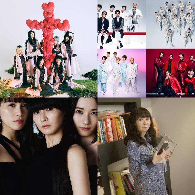 左上から時計回りにBiSH、Jr.EXILE、谷山浩子、Perfume