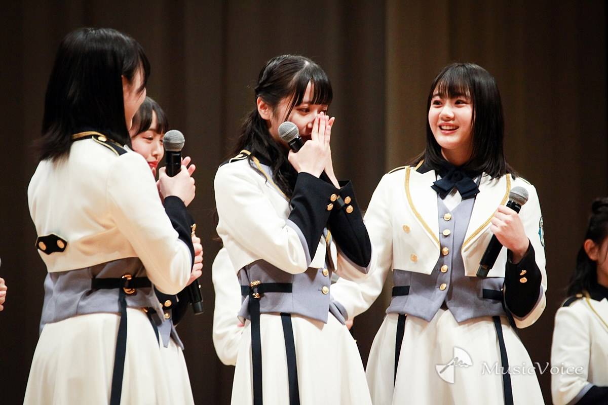 最初に発表されたのは2期生にして初選抜の川又あん奈。口元を抑え客席からステージに上がる。その後を小島愛子、高雄さやか、立仙百佳と2期生が続き、初選抜となる吉崎凜子と吉田彩良の2人が順に呼ばれる。驚きと嬉しさで表情が崩れる。