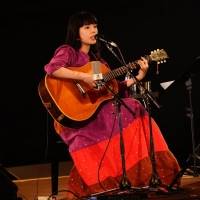 続けて登場したのはギタージャンボリー初出演となった小林私。土俵に見立てたステージに登場すると、小林 は律儀に靴下を脱ぎ、裸足でライブパフォーマンスを開始した。1 曲目「目下II」で彼独自の世界観にオーディエ ンスを誘うと、続けて「HEALTHY」では、赤いライトに照らされながら小林私流のブルースを熱く響かせた。最 後に選ばれた楽曲は「花も咲かない束の間に」。ステージは手動で 360 度回転する仕様だったが、小林はスタ ッフの手を借りず、自らが回転しながら弾き語りし、観客の笑顔を誘っていた。