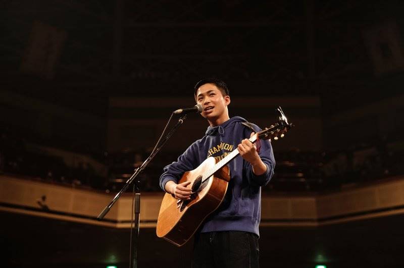 この度500組を超える応募者のなかから、厳正なる審査の結果、7 組のアーティストが最終審査へと通過。3月4日(金)行われた最終審査で、神戸のあらたとCLOWの2組が審査を通過し、ギタージャンボリーの各日 それぞれ幕間にステージで弾き語りを披露した。