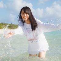 沖縄・宮古島と東京で撮影。宮古島ではTシャツ・ショートパンツなどのラフな格好で跳んだり走ったり自転車に乗ったりと伸びやかに過ごした。等身大の、少女のように初々しくあどけない表情が印象的だ。一転して、東京では166センチという長身を生かして背中が大きく開いた真紅のロングドレスを着こなした。