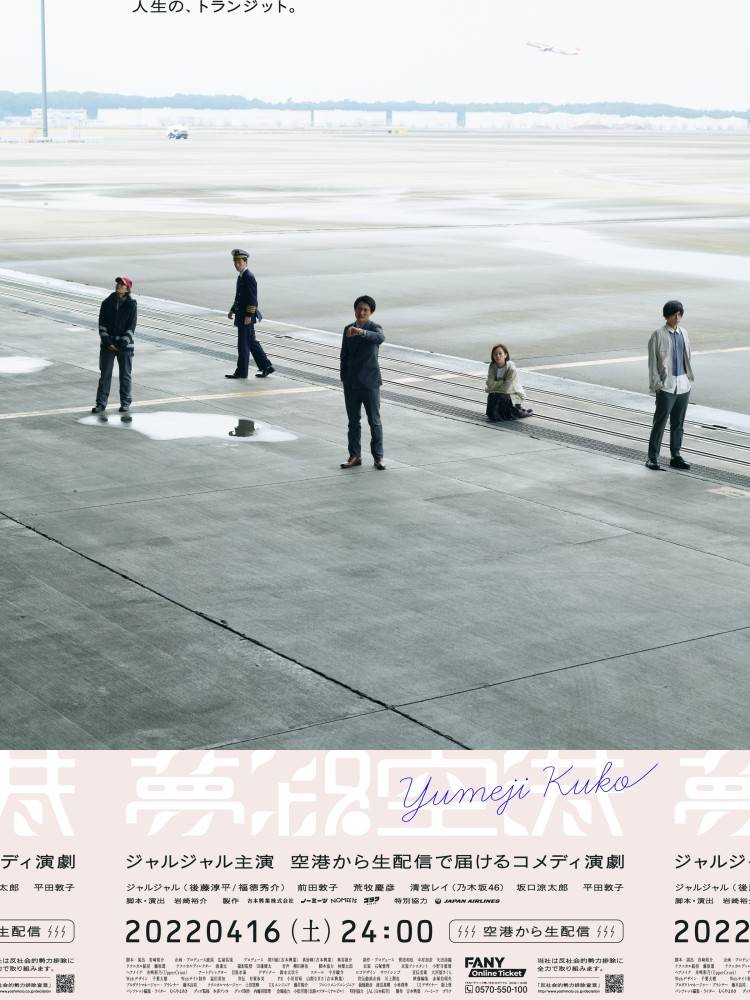 ハンバート ハンバートの柔らかな声が歌う「夢」とは?公演日4月16日に楽曲発表『夢路空港』は、ジャルジャルとノーミーツがタッグを組み、JAL(日本航空)特別協力のもと、石川県の「小松空港」を貸し切って生配信で届ける、クスっと笑えて、どこかホッとする、一夜のヒューマンコメディ作品。