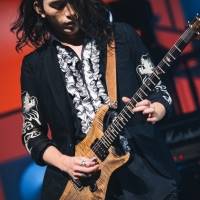 アルバム1曲目のインスト曲「Introduction」にアレンジを加えたトラックと映像で『SUCK MY WORLD』のテーマを改めて明示すると、巨大なスピーカーが並ぶ壮観なステージに山中拓也(Vo/Gt)、あきらかにあきら(Ba/Cho)、鈴木重伸(Gt)、中西雅哉(Dr)が現れる。そして「MACHINEGUN」から演奏がスタート。スモークが噴射されるなか、刺激的なギターリフが導くのはポストパンク直系の「Tonight the silence kills me with your fire」で、「Fantasy」のファンキーなグルーヴに観客が飛び跳ねた。開始3曲で早速多様な曲が堪能できるのは、“ロックバンドとは”という核心を突き詰めるため、音楽の歴史を遡るような構成を採ったアルバム『SUCK MY WORLD』のツアーならではの醍醐味だろう。バンドとして鍛えられた部分も多かったと想像するが、今や曲たちは、音色やリズムの取り方、ステージ上での立ち振る舞い、時には使用楽器も変えつつ、曲ごとのジャンルにどっぷり浸かって演奏する4人の手の中にある。場内は早くも床が揺れるほどの盛り上がりだ。