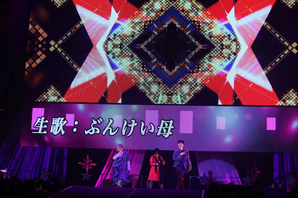 その後、シークレットゲスト第二弾として、ぶんけい母がセンターステージから登場。ぶんけい母の生歌、@小豆とぶんけいの踊りの3人体制で「バブリーダンス」を披露。ぶんけい曰く、ぶんけい母は歌手になる夢があったとのことで、今回幕張メッセという大舞台で実現。自身の夢のみならず、家族の夢も実現するぶんけいのスケールの広さに感銘を受けた。
