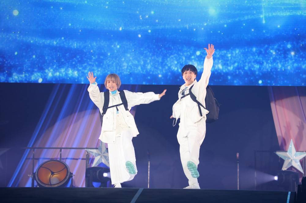純白の衣装に身を包み、@小豆とぶんけいが再びステージに登場。ダンサンブルなサウンドにメリハリのついたエモーショナルなダンスで、YOASOBIの「三原色」を披露。過去、YouTubeチャンネルでも「三原色」の踊ってみた動画のショート尺はアップロードされていたが、今回はフル尺で披露。「伏線回収?」「泣いちゃわん?」と@小豆が話す中、サプライズでYOASOBI達からのメッセージ動画も到着。更なる伏線回収に、ぶんけいも思わず「こんな嬉しいサプライズありますか?!」と言葉を漏らす。