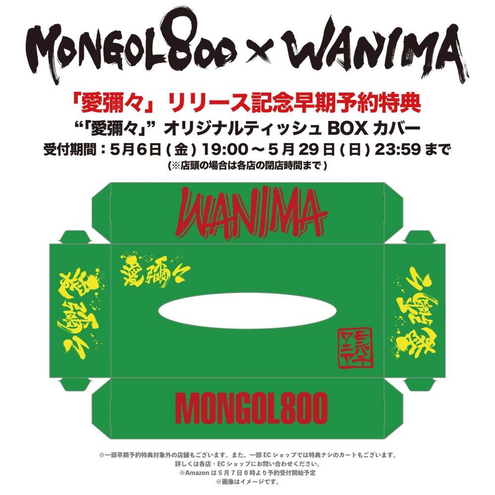 さらに東京、大阪、名古屋、沖縄で開催されるスプリットツアー「MONGOL800×WANIMA -愛彌々- TOUR 2022」が発表された。CDの封入特典として、本ライブの封入先行も同封されている。