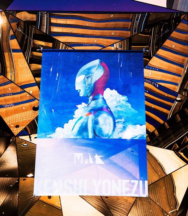 会場は、東京・東急プラザ表参道原宿のエントランス。中央にある長階段には、米津の楽曲タイトルが年代順に下から上へと記載されていき、一番上の階段には「音楽はつづく」のメッセージが記された。また、ミラーのゲートに、「M八七」のジャケットフラッグが冠され、階段下には、米津のキャラクターイラストやロゴなどが星に瞬く3Dサイネージが設置された。