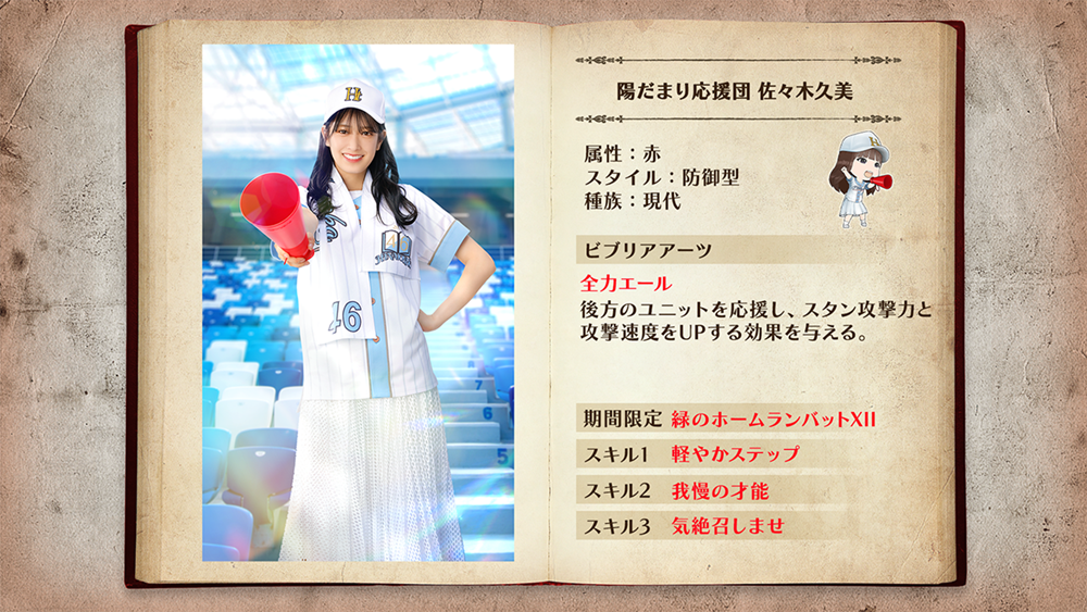 新ジョブ「★4 陽だまり~ず」は、日向坂46のメンバー全員によるユニフォーム姿のメンバーカードで「★4 陽だまりエース 渡邉美穂」は、渡邉が新たなユニットとして登場する最後のメンバーカード。