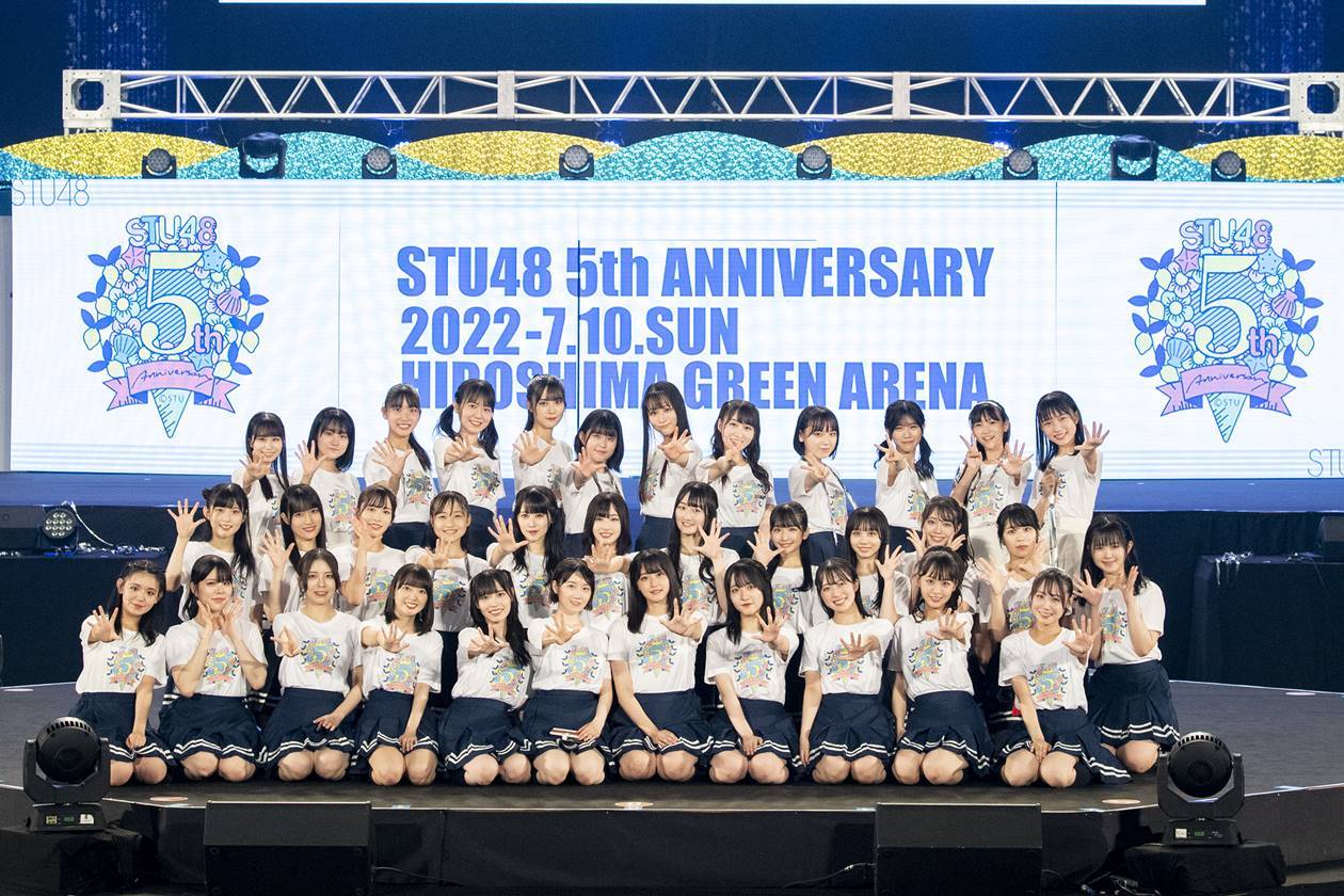 STU48は2022年3月31日に結成5周年を迎えました!こうして活動ができているのも、いつも応援してくださっている皆様のおかげです。本当にありがとうございます!6年目に突入し、新しいメンバーも加わり、STUにまた新しい風が吹いています。私達の活動を通して、日々の支えだったり頑張れるきっかけを与えられる、皆さんの背中を優しく押す追い風のような存在になれたら嬉しいです。メンバー1人1人がグループにとって大切な存在であることと同じように、メンバーにとって応援してくださる、そばにいてくださる皆さんは、1人1人とても大事な存在です。6年目に突入したSTU48は今まで以上に皆さんと前に進んでいくグループになれたらなと思います。だからこれからも一緒に走ってくださると嬉しいです。5周年コンサートで、メンバー全員で広島グリーンアリーナという大舞台に立てたこと。5月3日のコンサートが延期となり、皆さんをお待たせしてしまいましたが、本日同じ場所で開催できたことに心から感謝しています。メンバーみんなで決めた目標。グループとしての夢の場所でした。この経験を次に繋げていけるように、また新たに新しい目標を、みんなで見つけ、心一つに進んでいきます。6年目もよろしくお願いします!