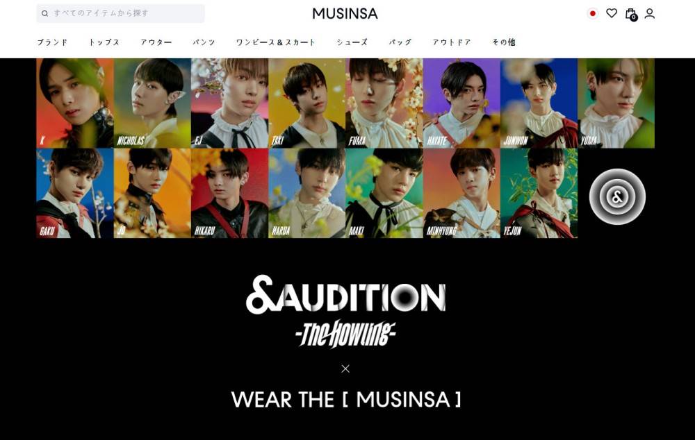 韓国のファッションブランドの魅力を世界に発信する「MUSINSA(ムシンサ)」は、「HYBE LABELS JAPANグローバルデビュープロジェクト」発のオーディション番組『&AUDITION - The Howling -』に衣装協力をしている。7月5日に日本上陸を果たした韓国No.1のファッションプラットフォーム「MUSINSA GLOBAL STORE(ムシン サ グローバル ストア)」内に、『&AUDITION - The Howling -』でメンバーが着用した衣装をチェック、購入できる特設サイトをオープンした。