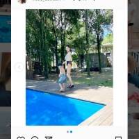 押切もえが7月30日に更新した自身のインスタグラムで、長男と長女とプールを楽しむ様子を公開。押切自身は水着姿で美しいスタイルにフォローから反響の声が寄せられている。