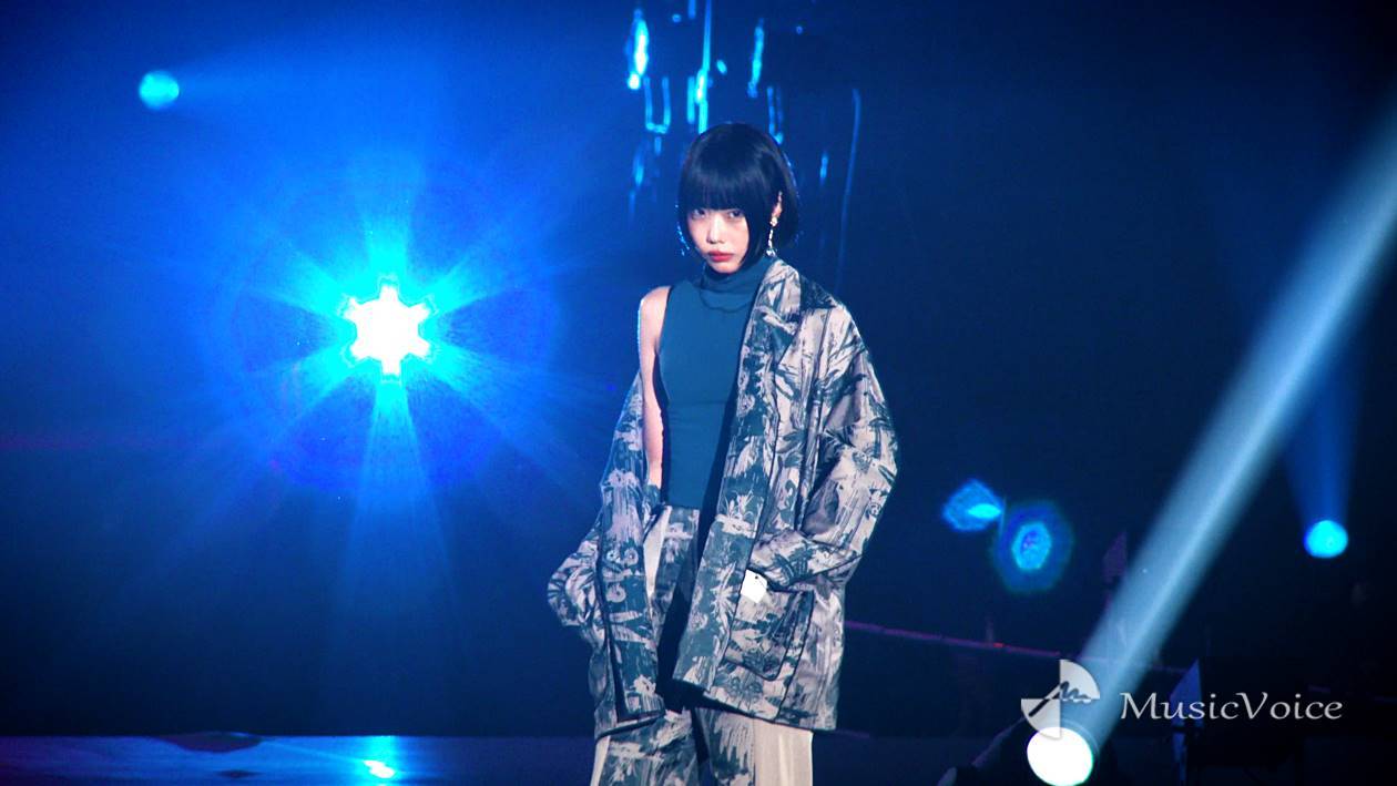 終盤の「CREATE’S スペシャルステージ」のトップバッターを飾ったあのは、スリットの入ったロングパンツとジャケット、そしてノースリーブニットの組み合わせ。