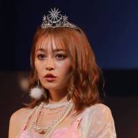 「DRW」ステージのトップバッターを飾ったれいぽよ。ピンクのランジェリーに、ネックレスとティアラを付け、ファーの付いたレースのガウンをなびかせランウェイを歩いた。
