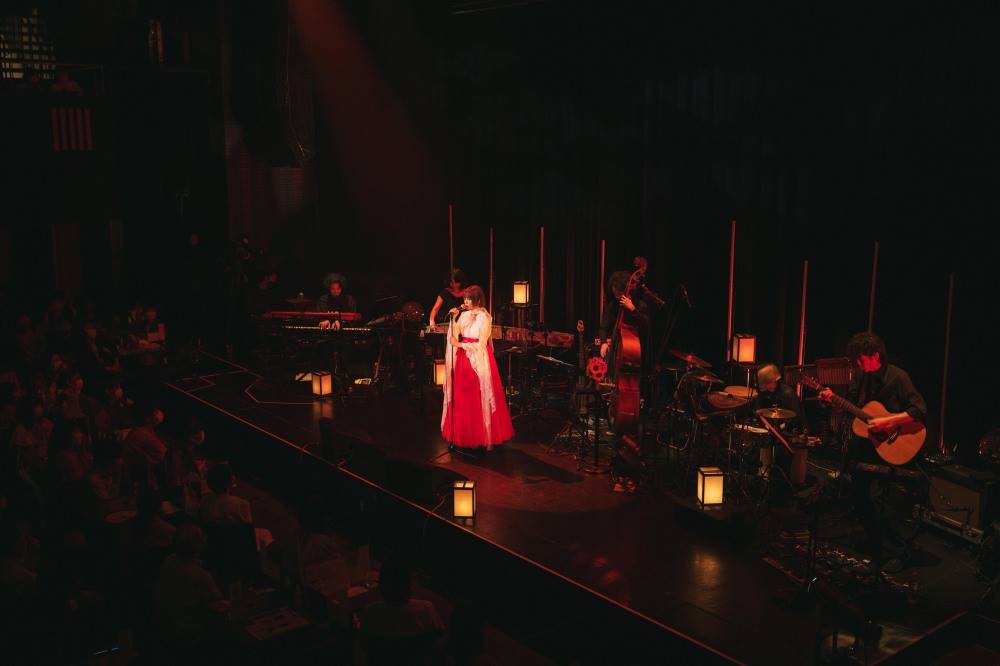 その後も、自身が主演を務めた大河ドラマ「おんな城主 直虎」で、一人の役を1年間演じた経験を満たされた月夜である十六夜に重ねた「いざよい」、2003年に公開された映画『黄泉がえり』の主題歌で、RUI名義でリリースして大ヒットした「月のしずく」と “月”をモチーフにしたバラードを情感豊かに歌唱。MCでは、「しっとりとした月の曲が多いですし、陰と陽でいうと、陰の歌詞が多かったりするんですが」と前置きした後で、「私自身が明日、8月5日が誕生日で夏生まれ。太陽のパワーや力強さの中で生まれたというところで、皆さんが太陽のエネルギーを感じて、そこはかとなく元気になれるようなコンサートにしたいという思いで、このタイトルをつけました」と、「陽の巫女の宴」というライブタイトルについて解説。さらに、「私にとって歌詞や言葉を紡ぐこと、歌うことは“祈り”に近いものがあります。和の世界観が好きということもあり、恐れ多いのですが、祈りや願いを込めて歌うという思いで“巫女の宴”と名付けました」と明かし、「それぞれの心に届いて、豊かな気持ちになってもらえたらいいな。もしも傷があるんだったら、癒やされてほしいなという思いで歌っております」と語ると、満員の客席からは、彼女の祈りの歌が心にまっすぐに届いてることを伝えるかのような温かい拍手が湧き上がった。
