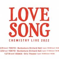 CHEMISTRYが、2022年最後のライブ『CHEMISTRY LIVE 2022「LOVE SONG」』の開催が、10月1日のZepp Haneda公演のMCで堂珍・川畑の口から発表された。