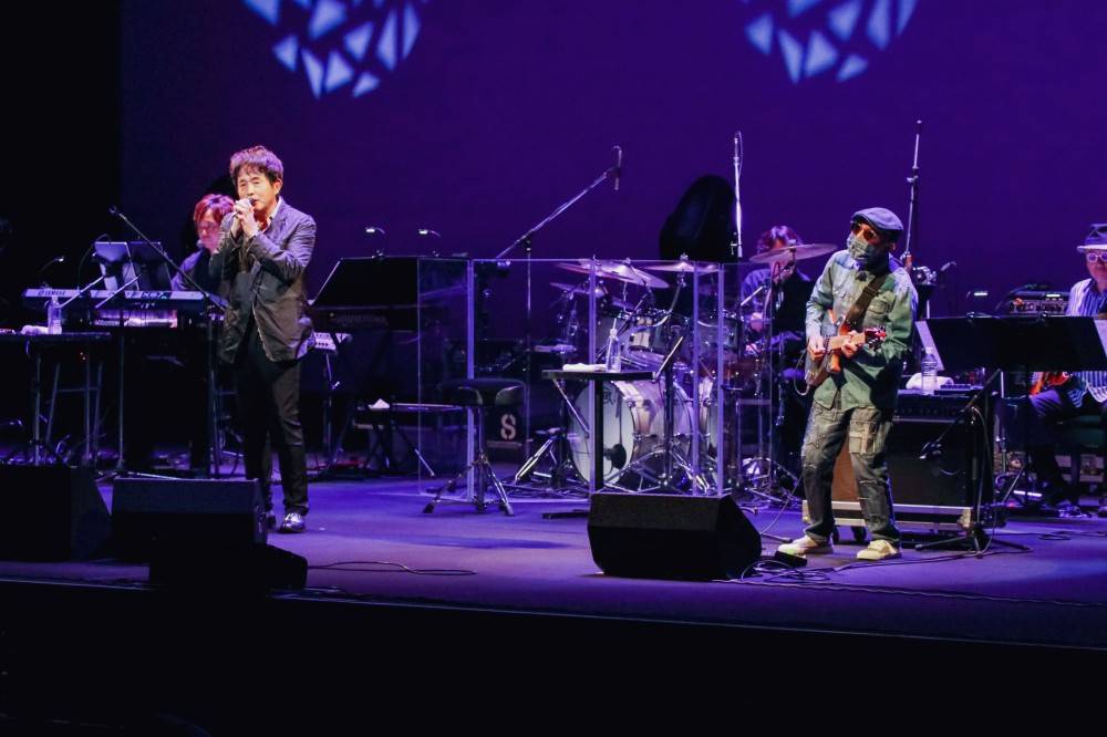 リリースしたばかりの新作ソロ・アルバム『radio JAOR〜Corner stones 8〜』からの曲を中心にJ-POPの名曲を次々と披露し、満員の会場から熱い拍手を集めた。なかでもクライマックスの一つとなったのが、かねてより病気療養中だったSing Like Talkingのギタリスト、西村智彦がサプライズで登場。水泳で体力回復をはかっている近況を話した後、アルバムでも参加している「雨のリグレット」で颯爽としたギター・プレイを展開して、回復ぶりを印象づけた。さらにゲストとして登場した芳野藤丸が往年の甘いボーカルと切れのいいギター・ワークで会場を沸かせた。