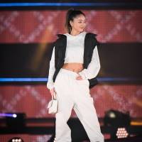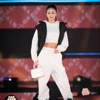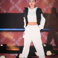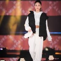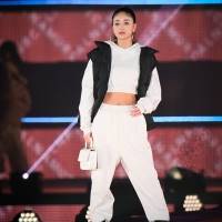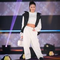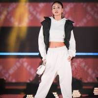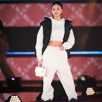 みちょぱは、ショートフーディトップスとオーバーサイズスエットパンツに黒のシューズ、ベストコートを組み合わせたコーデ。引き締まった美ウエストも露わになったスタイルで魅了した。