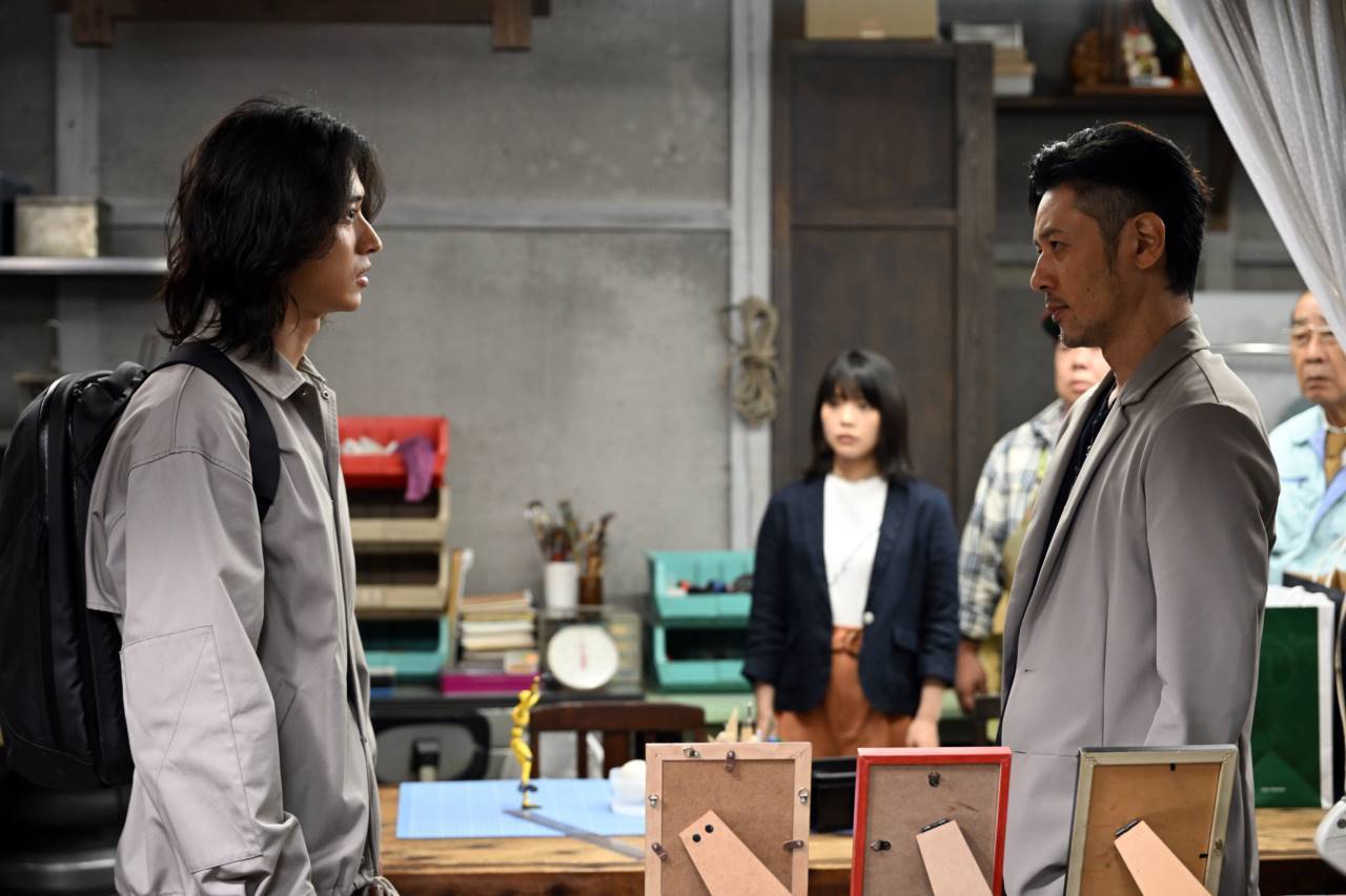 山崎賢人が演じる那由他と、対峙するオダギリジョー演じるサガス社長の興津:『アトムの童』初回放送(TBS)