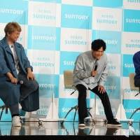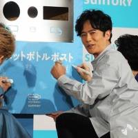 稲垣吾郎、草なぎ剛、香取慎吾が20日、都内で行われた『~みんなのボトルを、みらいへ!~生まれ変わって、次の人に届くペットボトルポスト 記者発表会』に登壇した。