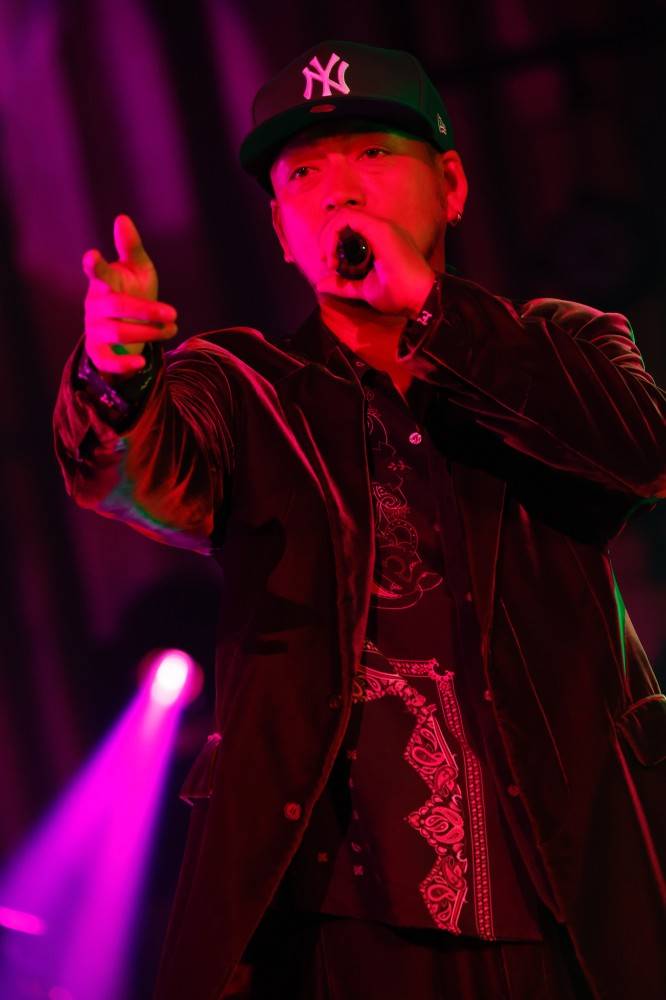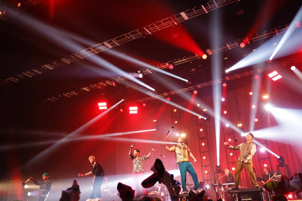 「Updating Life」では、SWAYが「ついて来いよ東京!」と叫ぶ。バンドのロックな演奏にも焚きつけられ、会場全体で赤いタオルが振り乱れた。さらにサングラスを外したKAZUKIが〈この世界に正解なんか無いって〉というライムをクールに歌い出す「GOOD DAY」では、メンバー5人が楽し気に手を振りながらパフォーマンス。