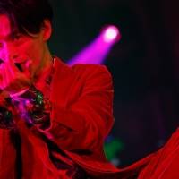 その後、衣装を替えたDIが5本のスタンドマイクの前に現れ「Citylights」でステージ再開。続いて「今日は素敵な女性がたくさん来ています! 皆さんの頑張っている姿、リスペクトです。そんなSUPER LADIESに贈ります」とSWAYが前置きして、シティポップ調な「Superlady」を披露する。