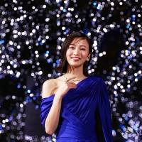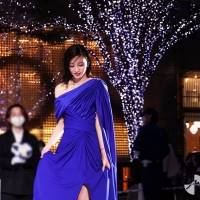 深いスリットが入った青のドレス姿で舞い降りた。点灯スイッチに手をかざすと、400メートルにも及ぶ六本木けやき坂通りが美しい光に包まれた。
