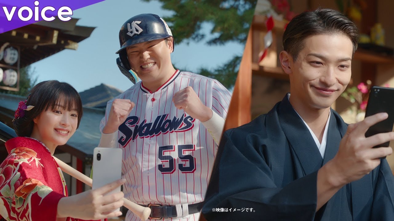 朝から青空が広がる、絶好のロケ日和となった撮影当日、広瀬は赤地に紅白の牡丹をあしらった艶やかな晴れ着姿で、村上選手は東京ヤクルトスワローズのユニフォーム姿で登場。188センチ、97キロの村上選手を前にして、まずは「大人と子どもみたい」と言って目を丸くした広瀬。バットを手にした村上選手が間近でウォーミングアップを兼ねた素振りを始めると、その驚きはさらに大きくなっていた。神社の境内に響き渡るものすごい風切り音を聞きつけたスタッフも続々と集まってくるなど、日本プロ野球界が誇る若きスーパースターのパフォーマンスに誰もが目を輝かせていた。