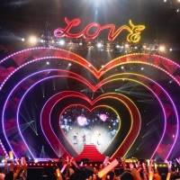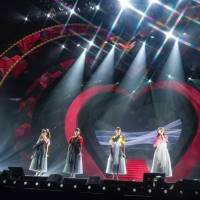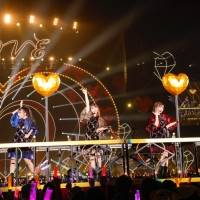 幕が明けるとDMB(ダウンタウンももクロバンド)によるストリングス隊を率いて演奏された「きよしこの夜」からスタート。オープニングムービーが映し出されたあと、ももクリ恒例となっている『PRIDE』のテーマソングが生演奏で鳴り響き、幕の奥にいるメンバーの動きと連動し、宙を浮くなど壮大な演出が散りばめられたプロジェクションマッピングが繰り広げられた。紗幕が振り落とされると、巨大なハートが何層にも重なったステージセットともにゴールドと黒を基調としたタイトな衣装に身を包んだメンバーが姿を現して、歌詞にも“愛”というワードがふんだんに使われている「愛を継ぐもの」から本編がスタート。続けて氣志團のクリスマスソングのカバー「SECRET LOVE STORY」ではハート型のサイリウムを使ったパフォーマンスを披露したあと、ストリングスを交えたゴージャスな生演奏をバックに「美少女戦士セーラームーンCrystal」オープニングテーマ「MOON PRIDE」を会場に響かせた。