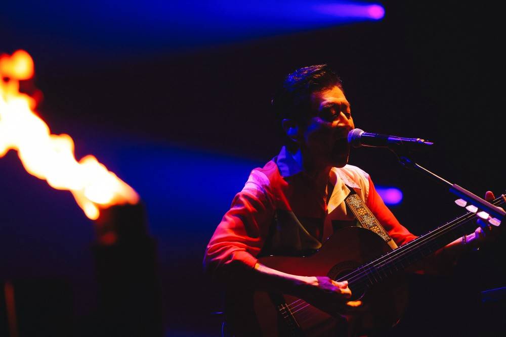 続く「若い広場」では琥珀色に照らされたステージでゆったりと温かい空気感を醸す。「炎の聖歌隊 [Choir(クワイア)]」では一斉に清涼感のあるブルー、パープル、グリーンと、次々と照明が変化し、雄大でドラマチックな空間を作り出した。